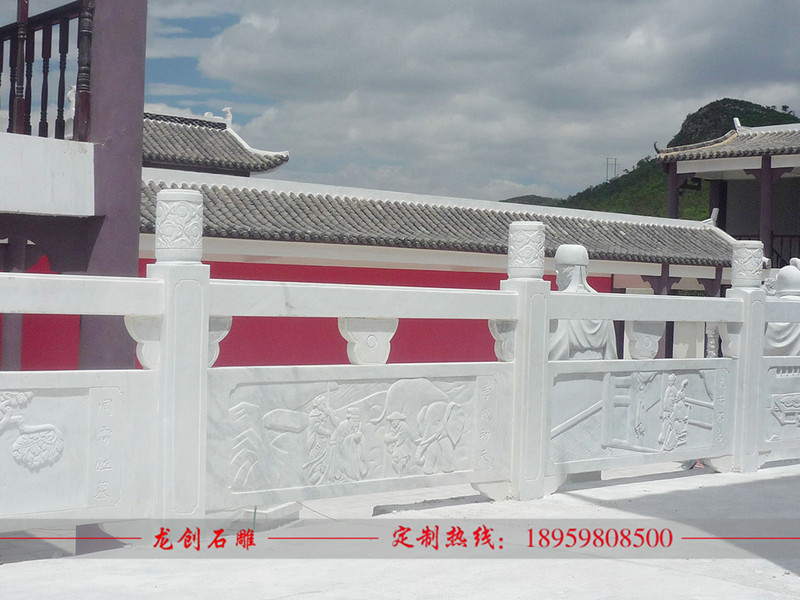 漢白玉欄桿、花崗石欄桿。完整的大理石欄桿由立柱、欄板、抱鼓、花托等幾部分組成。