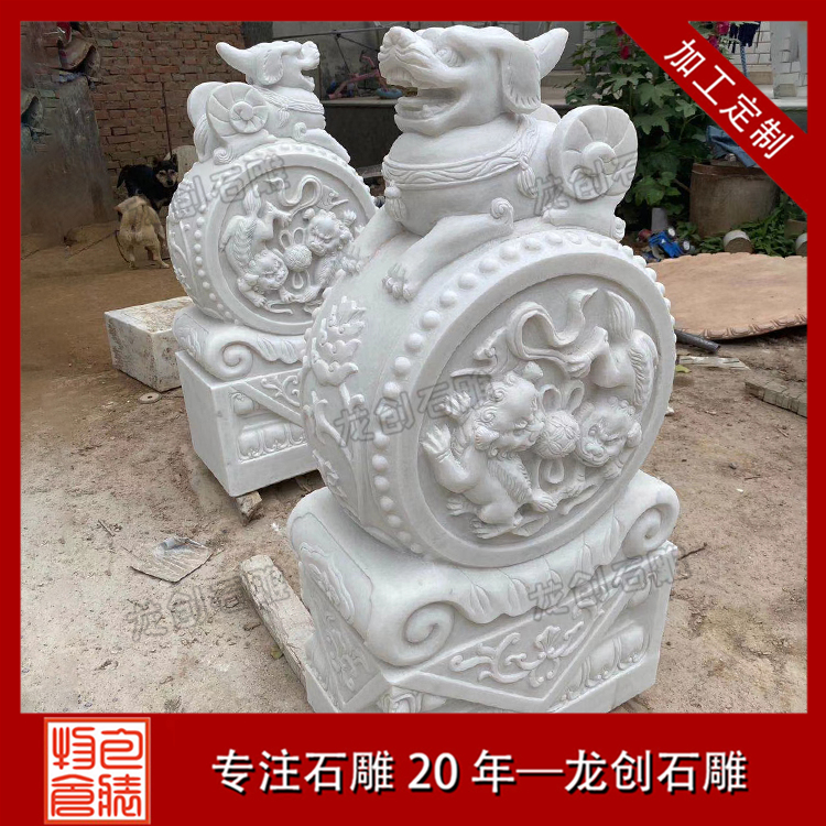 抱鼓石和門簪、門檻、門扇、門框一起產(chǎn)生整體的裝飾效果,以增強美感,有祈福、吉祥、辟邪等裝飾作用。