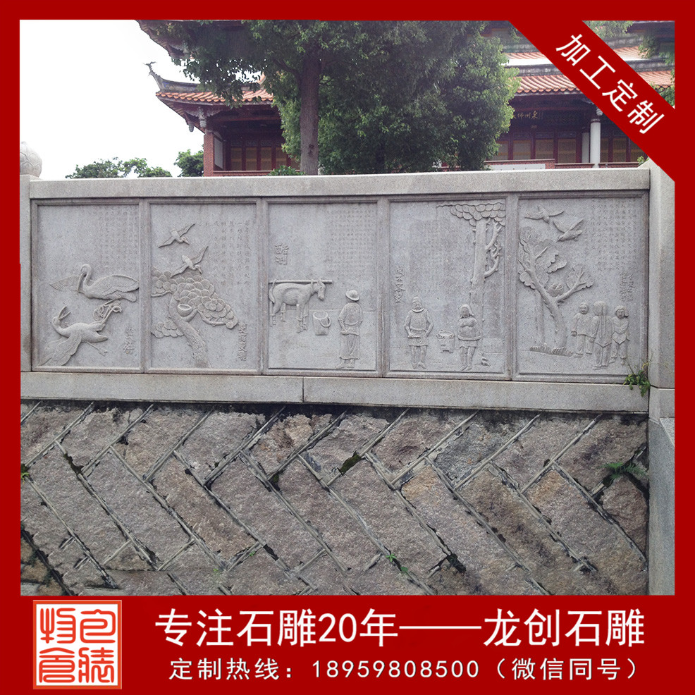 石材浮雕是將精巧的圖案雕琢在石材外表,美觀大方,且極富平面感。石材浮雕作為一種人們本人設(shè)計創(chuàng)作并雕琢的手工工藝品,是最古老的文化,并留給我們現(xiàn)代人豐厚的歷史文化藝術(shù)遺產(chǎn)。在大型浮雕制作中它一直用共同的手法和行為藝術(shù)方式來豐厚著人們的文化歷史。
