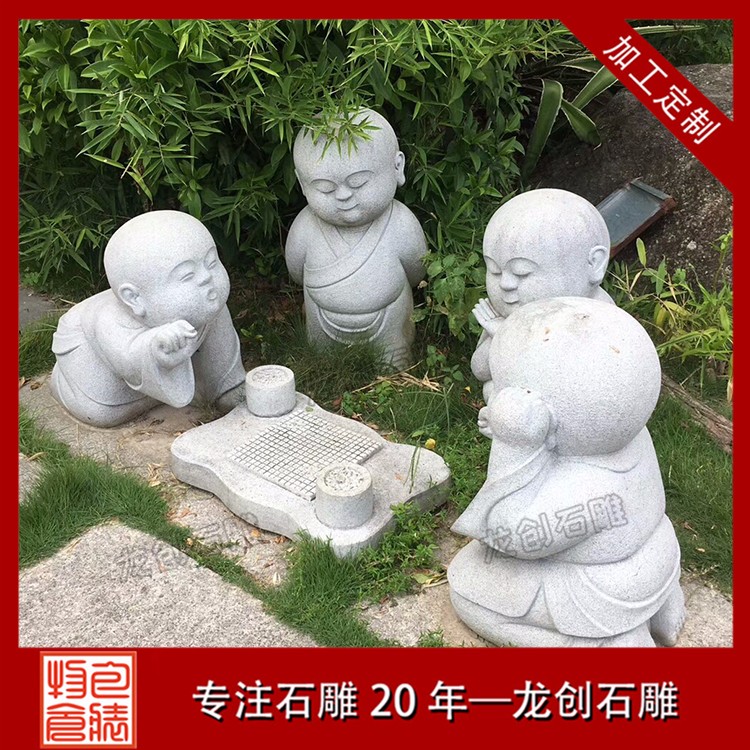 花崗巖石雕禪意小和尚圖片大全主要分為掃地小和尚,晨練小和尚,吹笛小和尚,打盹小和尚,偷懶小和尚等。正在打坐的石雕小和尚,眼睛微閉,正打著盹,慵懶可愛,充滿童趣。在景區,文化廣場,校園等地擺放,給人們帶來歡樂,同時又不失為一道風景線。