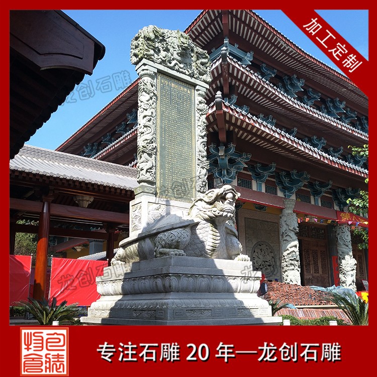 龜馱碑一般采用天然石材制作,常見的材質有大理石、花崗石、青石等。這些石材都具有堅硬、耐磨、耐久的特性,能夠經受住風吹雨打和時間的考驗。同時,它們也具有良好的雕刻性能,可以雕刻出精細的圖案和文字。
