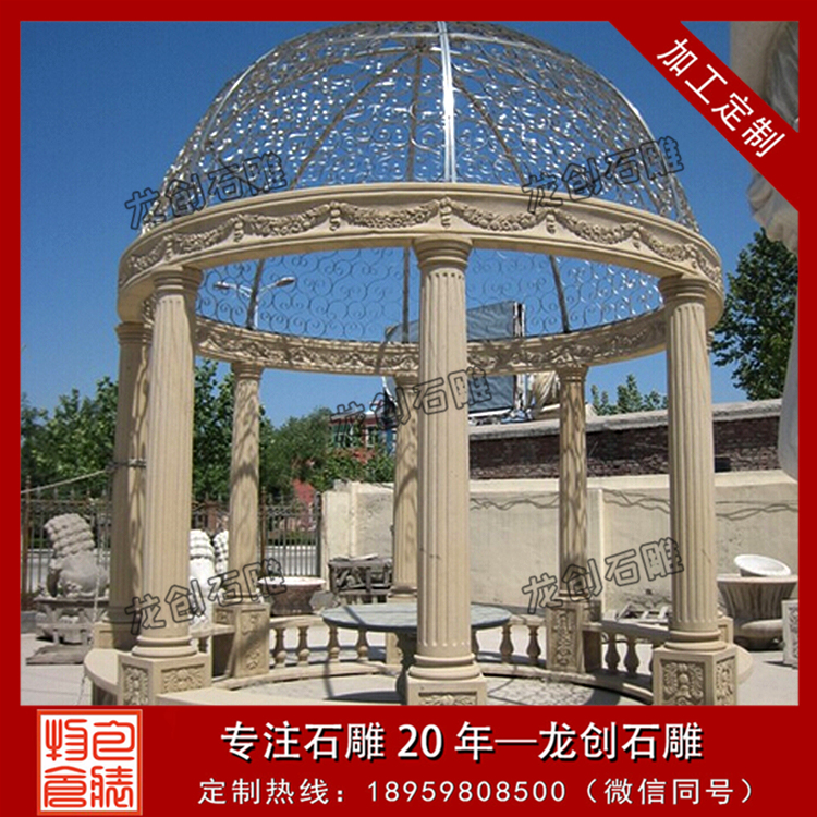 石雕亭子是指用石頭加工而成的亭子,多建于路旁,供行人休息、乘涼或觀景用。它的作用是供人們在里面休息,在廣大的農村、鄉間道路、景區道路上都可以見到石亭子或者木亭子,這種休息的叫做“路亭”,在園林中觀賞的叫做“景亭”在中國來說是有園林綠化的地方就有石涼亭。石亭子一般為開敞性結構,沒有圍墻,頂部可分為六角、八角、圓形等多種形狀。石雕亭子加工找龍創石雕。