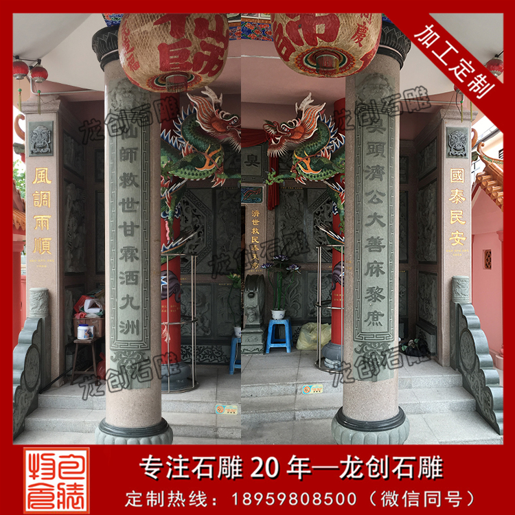 惠安龍創石雕專業定做石材圓柱,我們提供專業定制服務,只要客戶把想雕刻的圖案發給我們,我們就可以按上來的圖案進行雕刻;我們也提供石材圓柱設計,如果客戶還不清楚自己想要的,我們設計師可以先設計好發圖給你看;同時我們也有石材空心圓柱加工,支持來圖來樣加工。恭候您的來電。