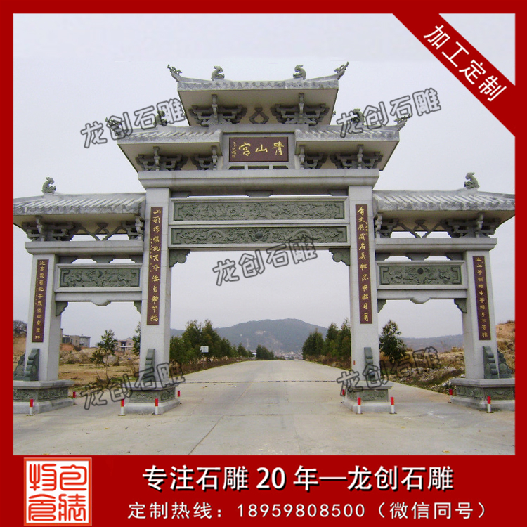 石牌樓上面雕刻有各種吉祥寓意的浮雕圖案,如獅子、龍鳳、麒麟、蝙蝠、梅蘭竹菊、荷花、牡丹等寓意吉祥的浮雕圖案。石牌樓多少錢?石牌樓價格主要受到材料成本的影響,如果材料成本可控,那么石牌樓價格不會太高。比如做一個總寬12米的牌樓,材質是青石的,做出來的石牌樓價格在15萬左右,而這樣的價格一般是在簡單工藝的基礎上可以做出來。如果我們想要更高的工藝要求,以及想要一些款式比較大氣的,那么這其中的價格可能會差5-8萬的差別。