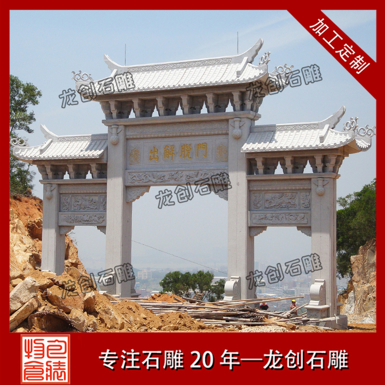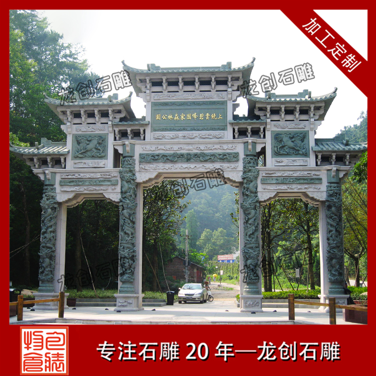 大型石雕牌坊制作作為古代建筑的一個典型代表,它的存在是對古代建筑比較好的詮釋也是對現代建筑應用的一個很好的體現。其中,寺廟大門石牌牌坊這種仿古建筑,無論造型、圖案都是有講究的,尺寸也是經大師研究確定,圖案精美,寓意深遠。